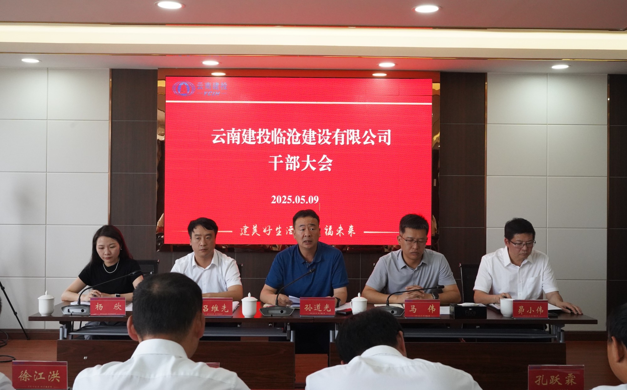 5月9日下午,临沧公司召开干部大会,宣布公司党委关于临沧公司中层干部的任免决定,公司党委书记、董事长,临沧公司执行董事孙道光出席会议并讲话?;嵋橛晒镜澄?、副总经理,临沧公司党总支书记、总经理马伟主持。