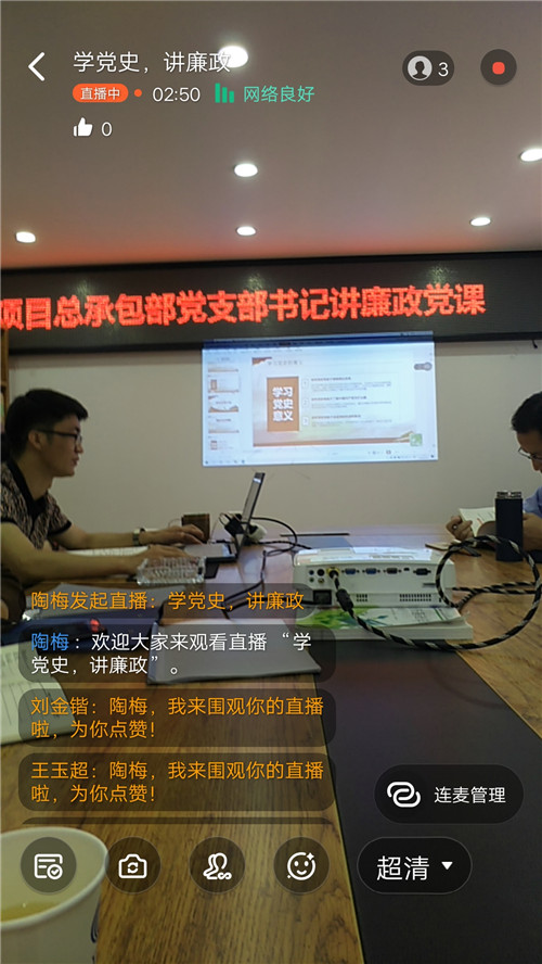 以史为鉴,可以看成败、明得失、知兴替。2020年6月20日上午,公司年轻副总经理、项目总承包部党支部书记、经理龙为华为全体职工讲授党课—学党史 讲廉洁。因部分党员职工在项目一线,无法参加现场培训,本次党课以现场授课加网络直播的形式开展,覆盖全体党员、群众职工。