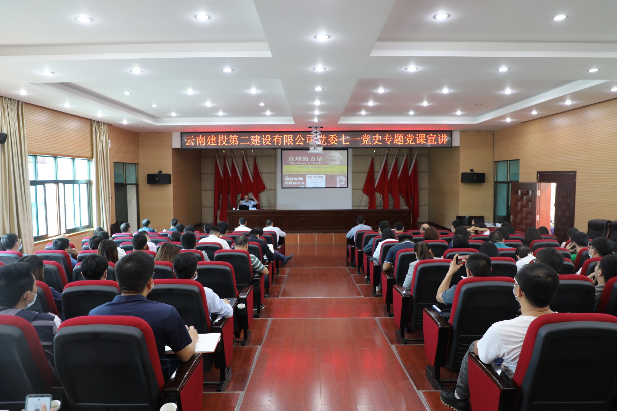 为庆祝中国共产党成立101周年,7月1日下午,公司党委在二楼会议室开展“七一”党史专题党课宣讲,公司在昆领导班子、扩大班子成员,各职能部门负责人、基层单位党政负责人以及部分党员代表参加活动,党课同时开通了钉钉直播,未到现场的党员同步参与学习。
