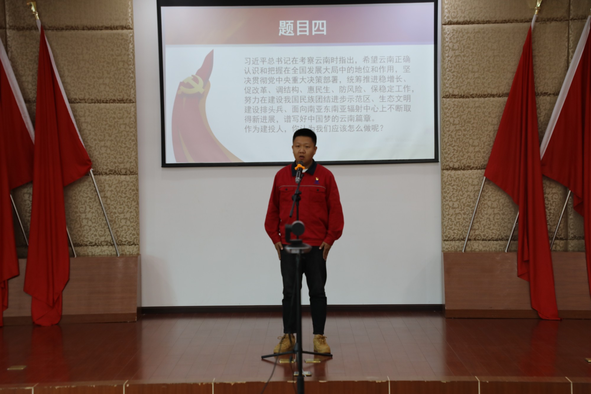 决赛分为主题演讲与即兴演讲两个环节,即兴演讲围绕党史、共青团成立100周年、乡村振兴等话题开展,由选手现场抽取题目,根据选中题目开展演讲。现场,选手们饱含深情,或慷慨激昂、或娓娓道来,用生动的语言、火热的情怀尽情展现自己独特的风采。决赛还邀请了获集团演讲比赛三等奖的第一安装分公司年轻副经理杜青呈作为特邀选手进行演讲。