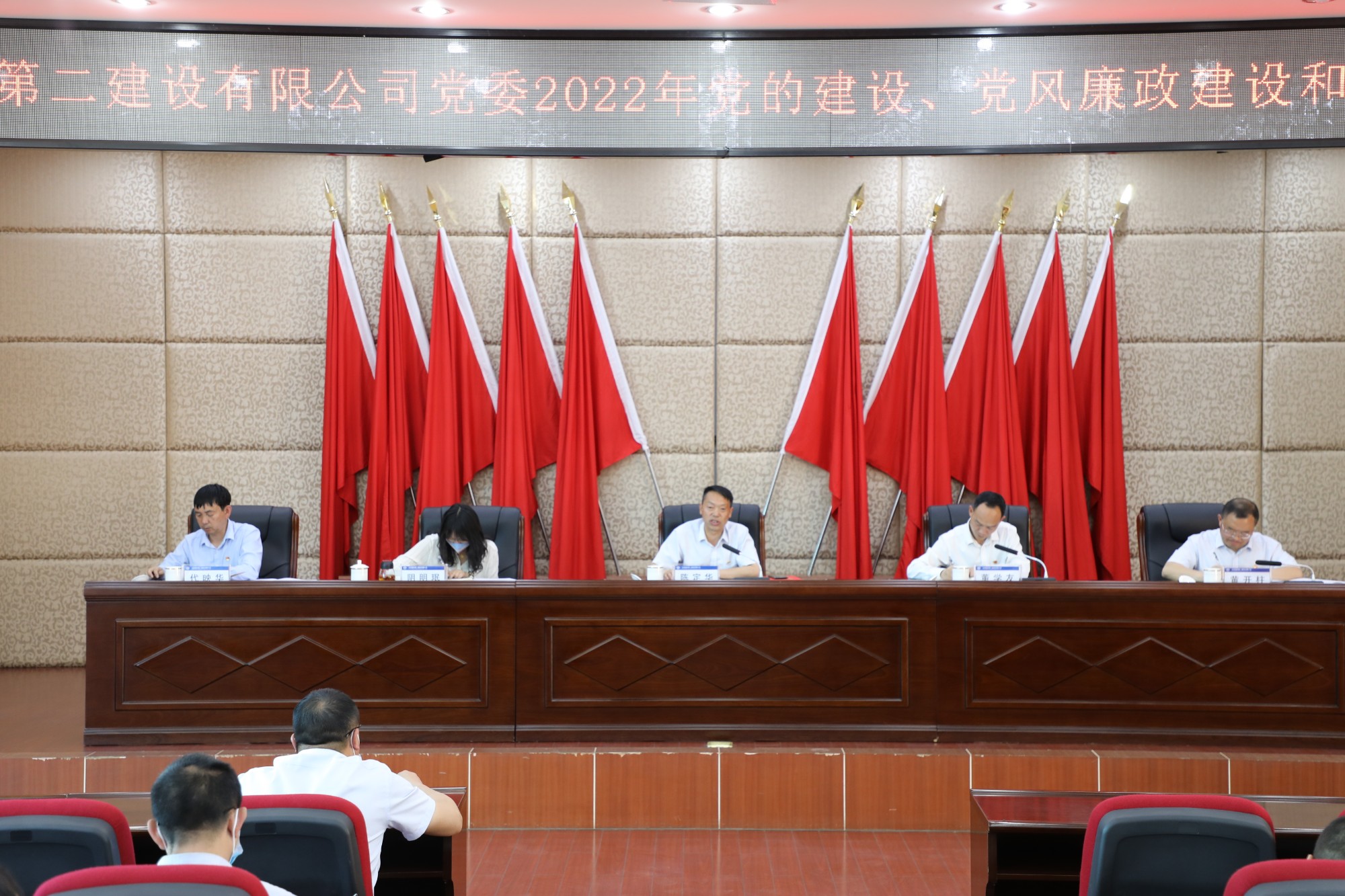 4月28日,公司党委召开2022年度党的建设、党风廉政建设和反腐败工作会。公司在昆领导班子、扩大班子成员出席会议,各职能部门负责人、各党支部负责人、各基层单位经理参加会议?;嵋橛晒镜澄笔榧?、副董事长、总经理董学友主持。