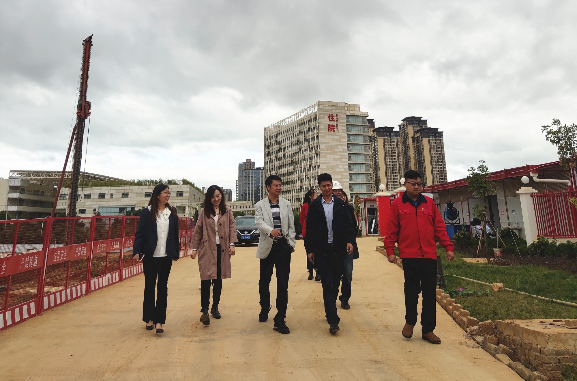 万向遵一行首先来到项目现场,详细询问了现场安全生产、工期进度、成本管理、团队建设等情况,实地参观项目部党建活动室、职工驿站、员工餐厅、办公区域等区域,并对阵地建设及项目宣传提出意见建议。