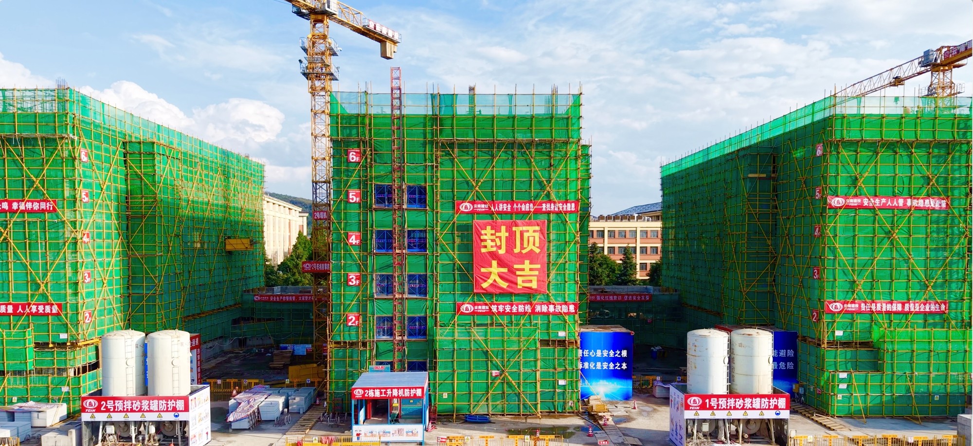 【项目动态】云南大学呈贡校区梓苑(1#-3#学生宿舍)项目全面封顶