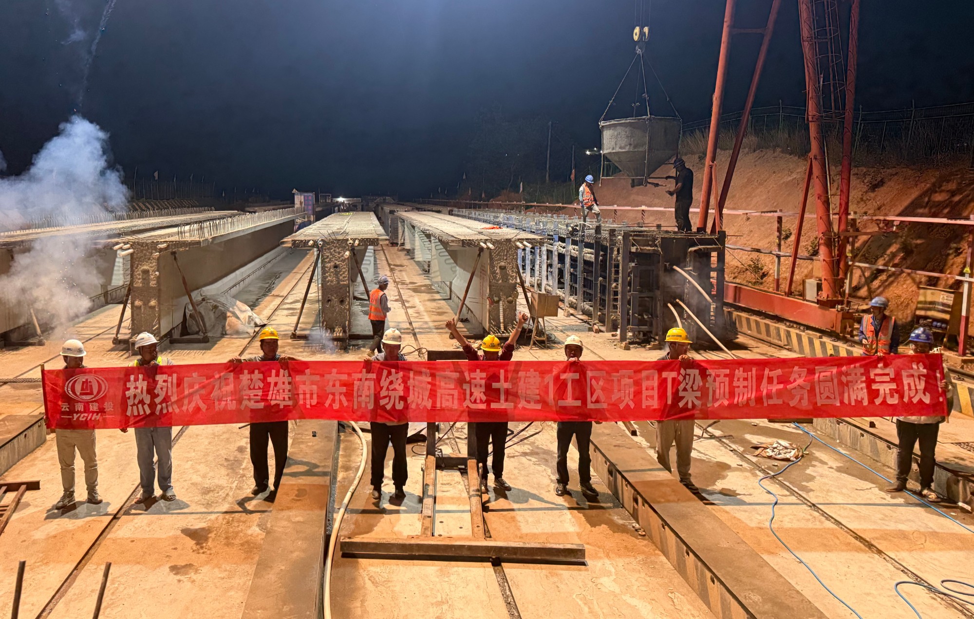 4月29日,路桥分公司承建的楚雄市东南绕城高速公路土建1工区梁场顺利完成最后一片T梁的浇筑工作。标志着项目建设取得了重大突破,为6.30转序打下了坚实的基础。