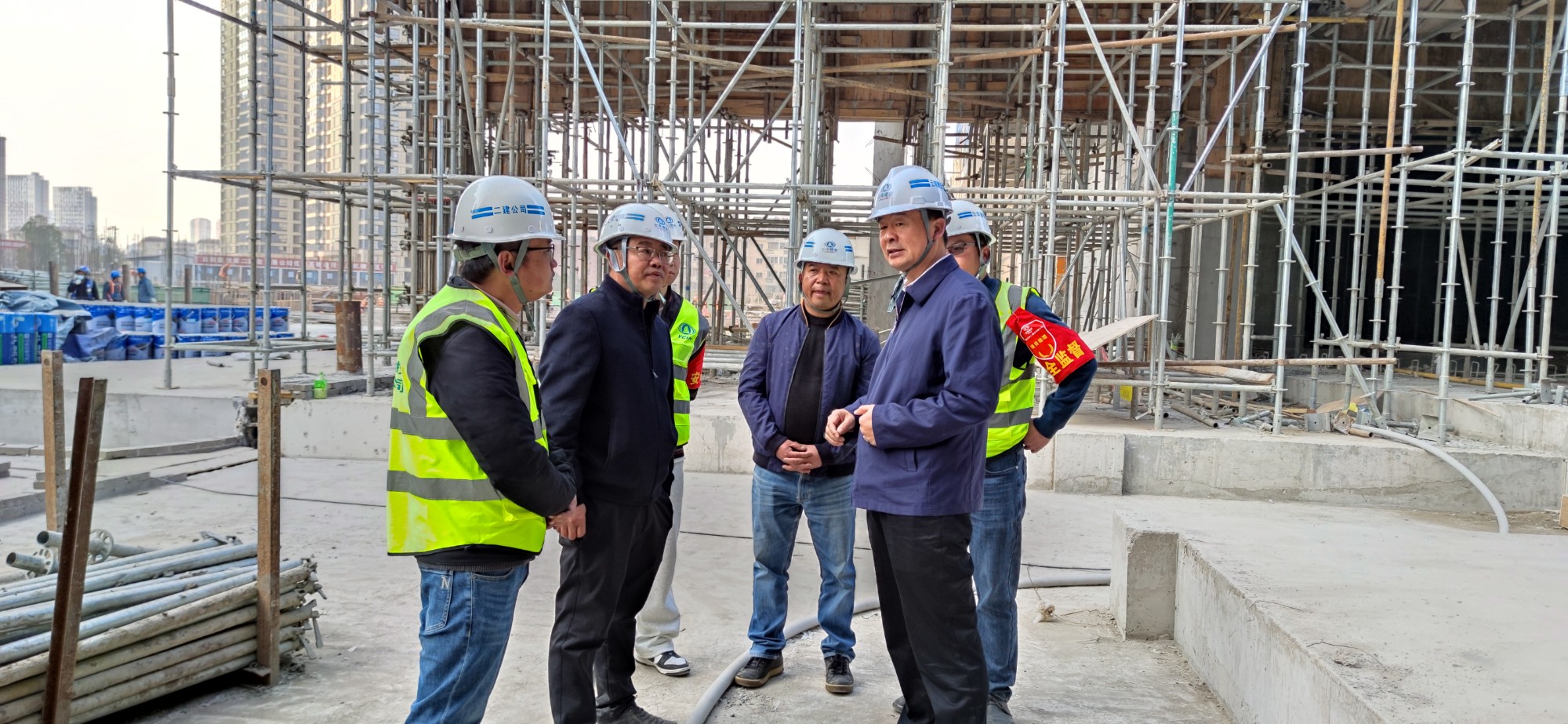 2月23日,公司党委书记、董事长孙道光带领公司相关职能部门负责人到金樾玖璋小区项目开展调研检查,深入施工一线检查指导工作并召开会议。