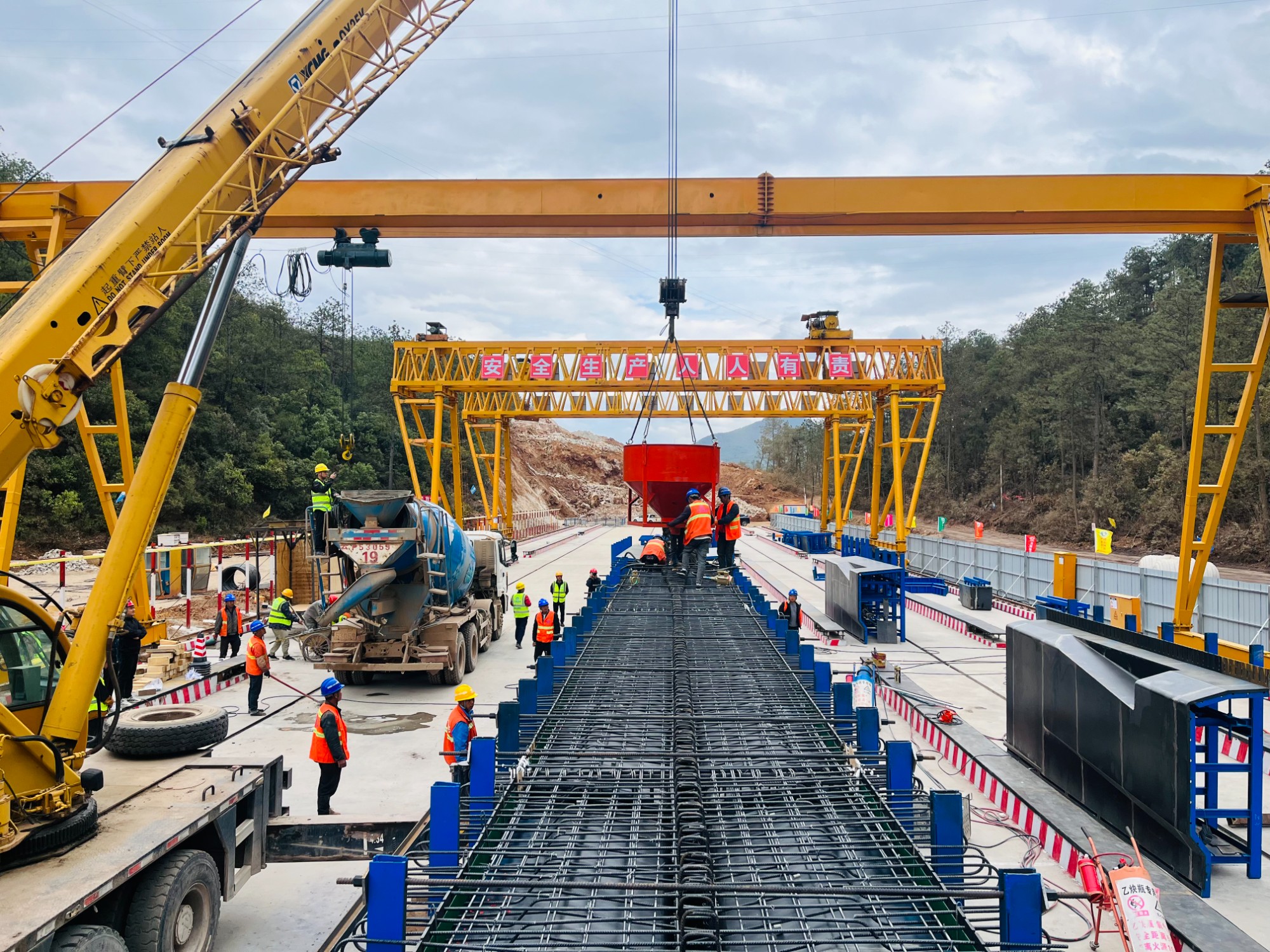 4月20日下午,第七直管部古宁高速三分部首片T梁(试验梁)顺利浇筑完成。这既是三分部的首梁浇筑,也是整个古宁高速公路项目的首梁浇筑,标志着该工程项目正式进入桥梁上部结构施工。