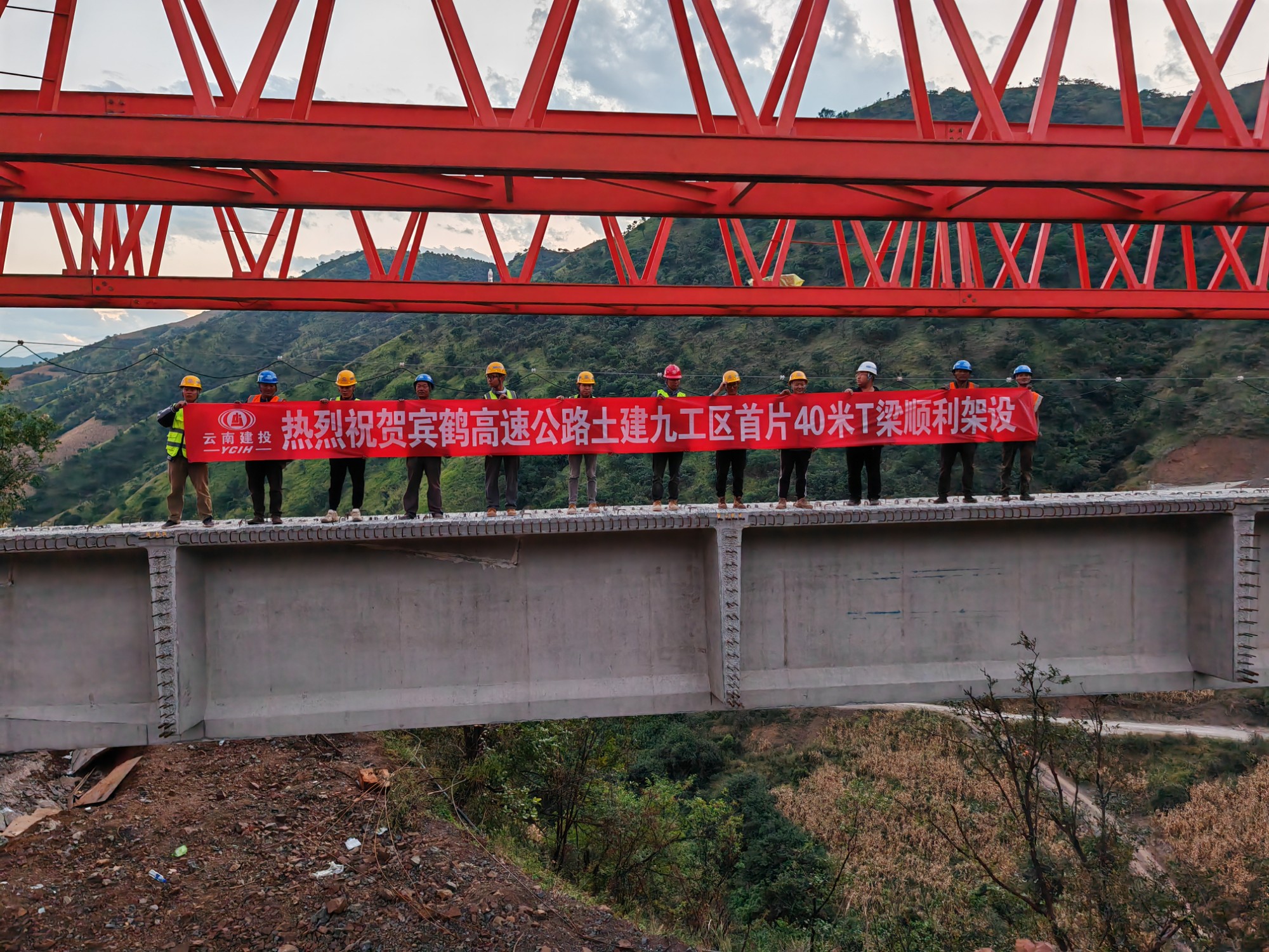10月21日下午,随着铁中坡一号大桥1-3号40米T梁缓缓降落,由路桥分公司承建的宾鹤高速土建九工区铁中坡大桥首片T梁顺利架设,标志着2023年施工任务取得阶段性进展,为早日实现全线通车奠定了坚实的基础。