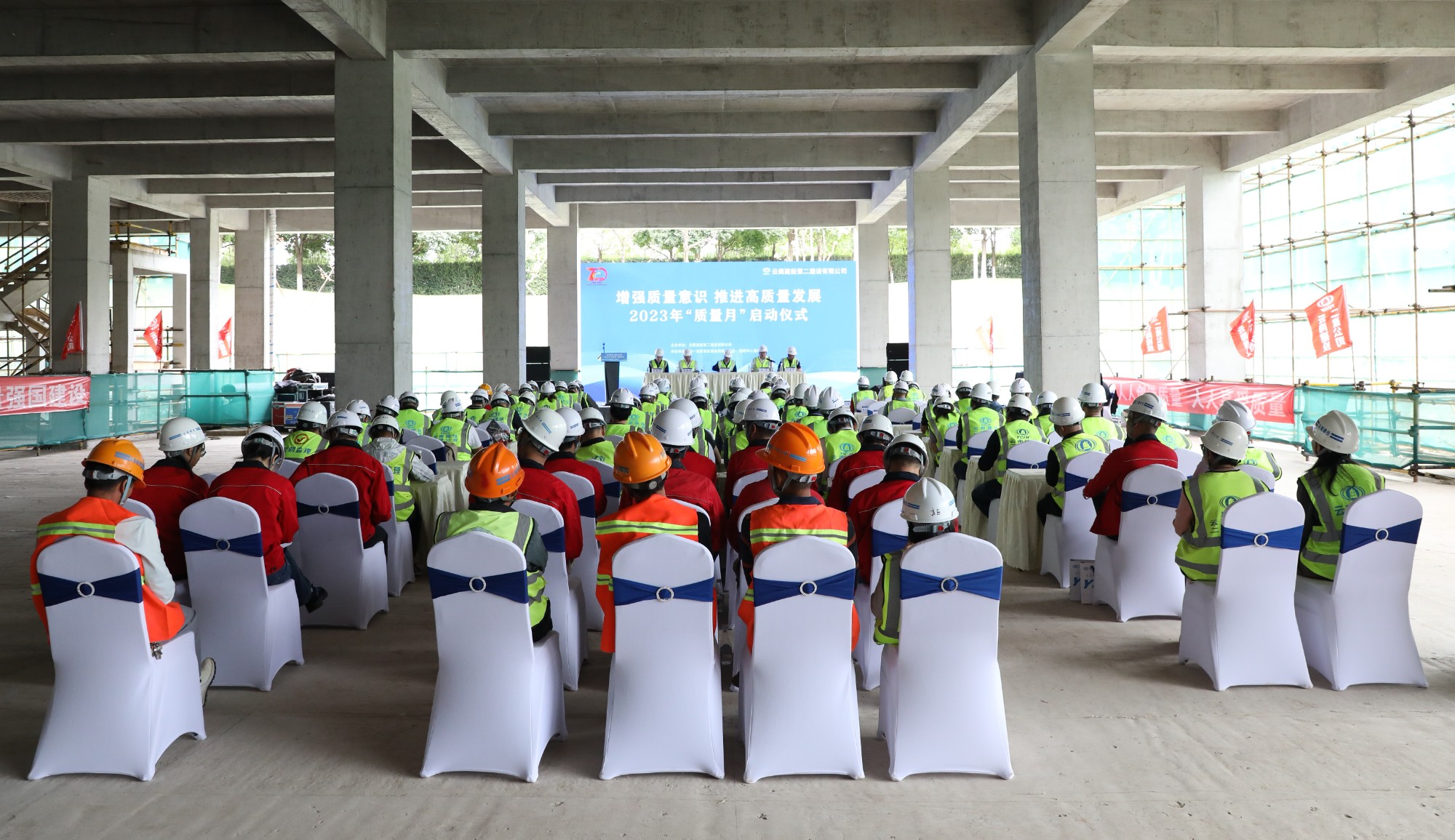 仪式上,云南白药研发平台—昆明中心建设项目建设单位代表和监理单位代表分别对开展好“质量月”活动提出要求。生产管理部经理宣贯了2023年公司“质量月”活动方案。第一直管部云南白药研发平台—昆明中心建设项目项目经理作交流发言。启动仪式结束后,全体人员进行了现场观摩。