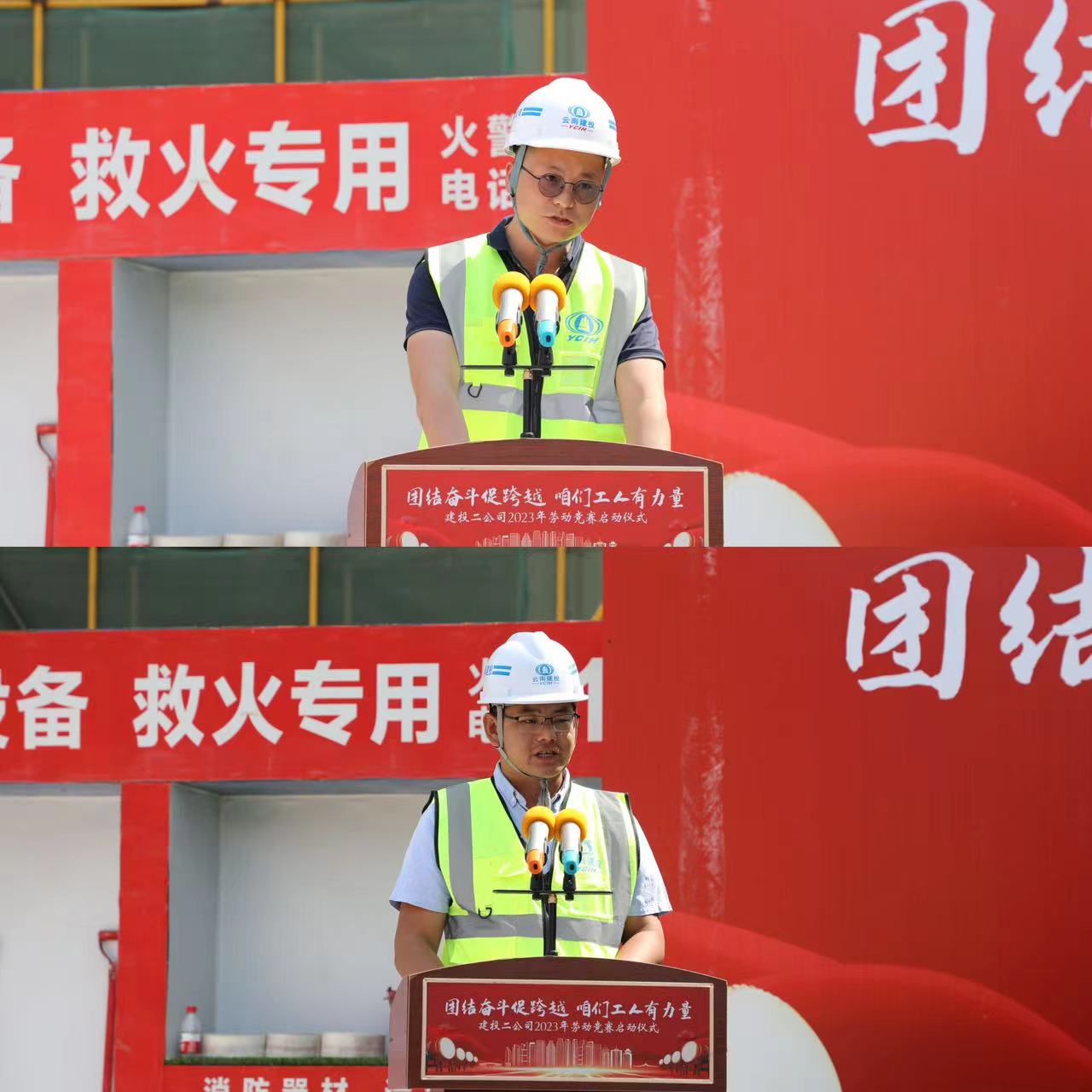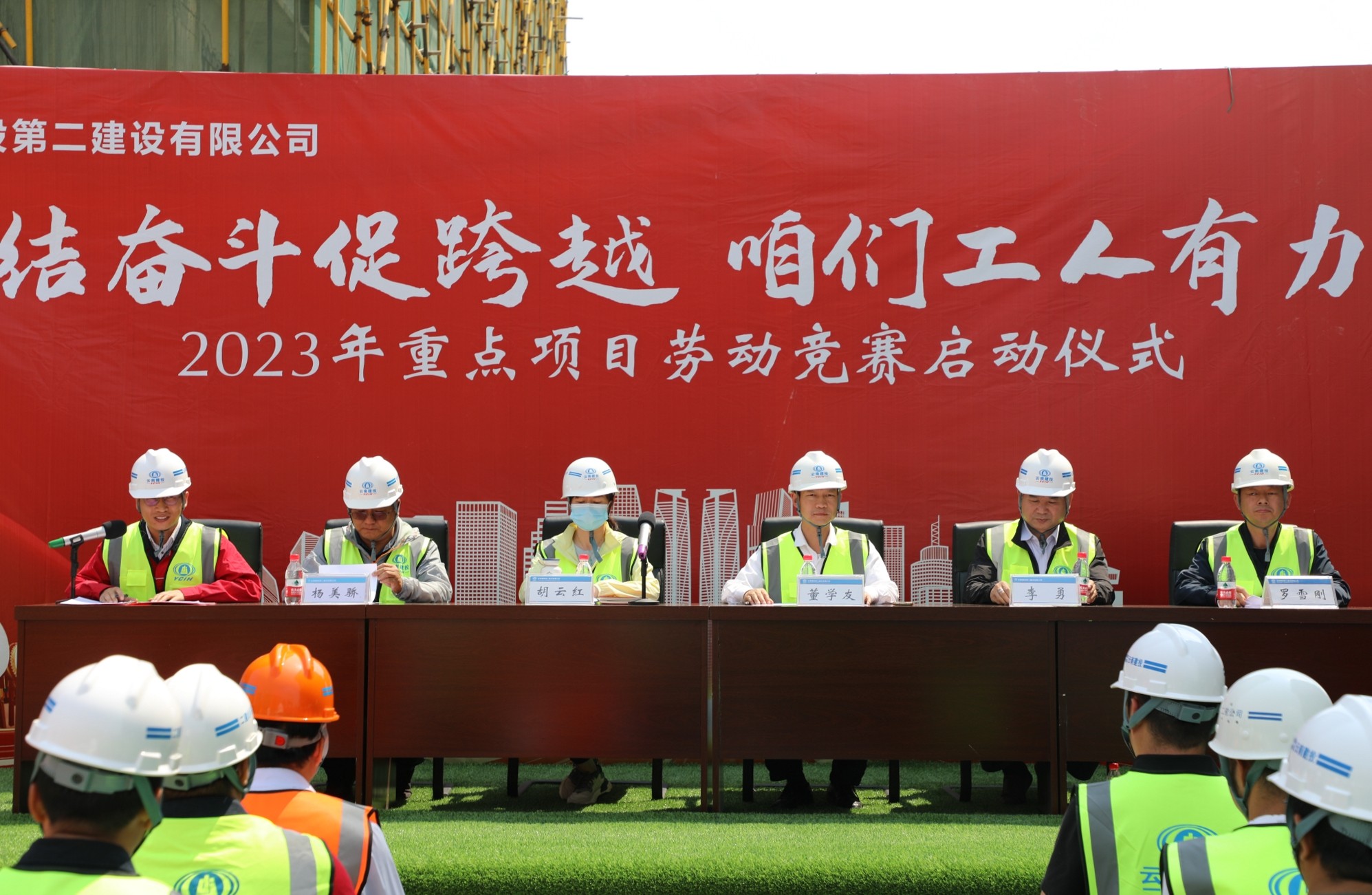 4月17日下午,公司工会在第十直管部楚雄新航鸿雅建设项目举行2023年“团结奋斗促跨越 咱们工人有力量”劳动竞赛启动仪式暨2022年度劳动竞赛先进表彰。公司党委副书记、副董事长、总经理董学友,党委委员、工会主席胡云红,总经理助理、第十五直管部经理李勇,安全总监罗雪刚出席活动,公司生产管理部、工会办公室成员,各基层单位工会负责人以及在建项目参赛代表参加启动仪式。