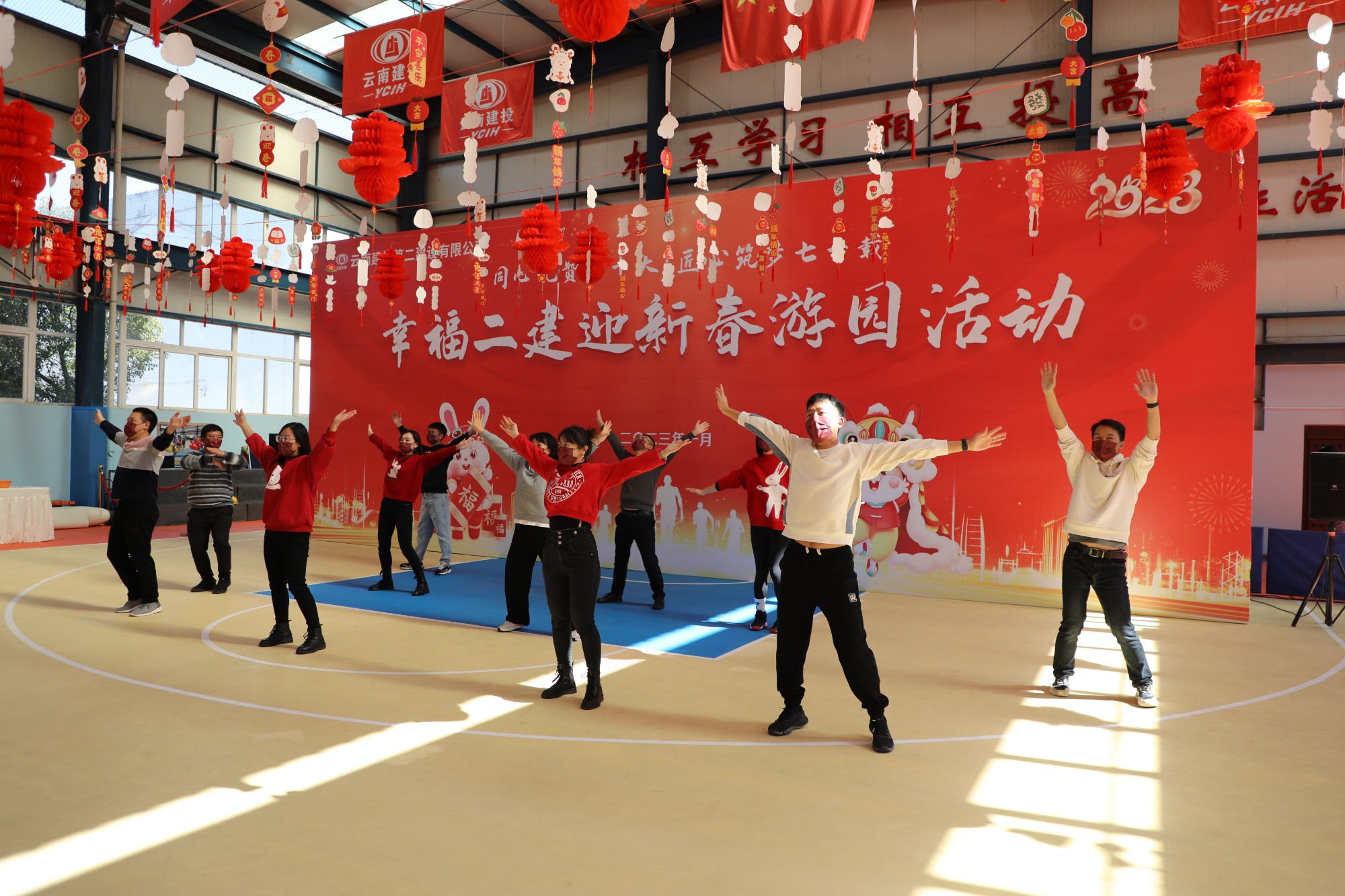 金虎辞岁,玉兔迎新,幸福二建迎新春。1月13日,公司工会举办“同心礼赞二十大·匠心筑梦七十载”迎新春游园活动,公司党委书记、副董事长万向遵,党委副书记、董事长陈定华,党委副书记、副董事长、总经理董学友,党委委员、总经济师阴明珉,党委委员、工会主席胡云红,党委委员、财务总监代映华,党委委员、纪委书记魏宏琼出席活动,与百余名职工共同游园、喜迎新年。