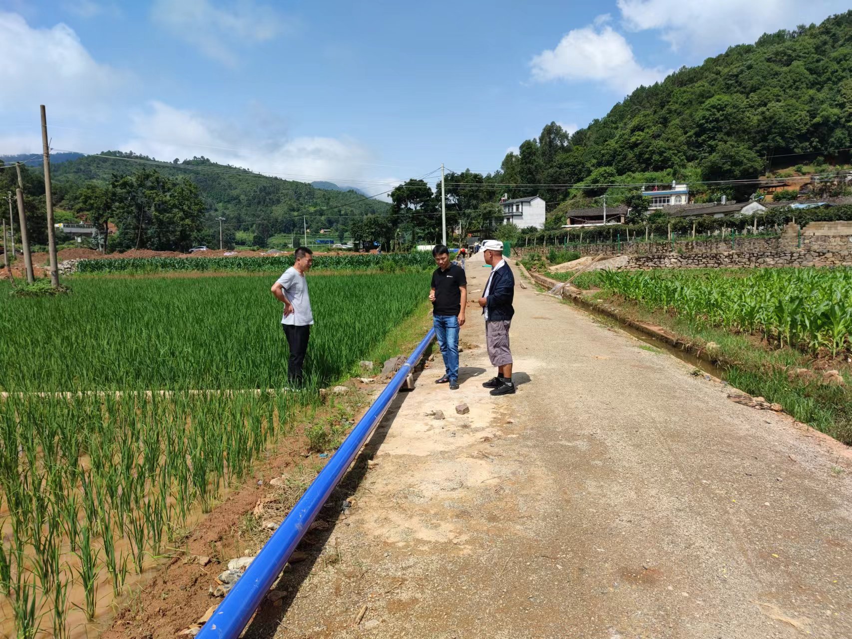 7月6日上午,石屏县水务局总工程师莫引玉,龙朋镇人大主席余卫峰,石屏县泽龙供水有限公司总经理何洪祥一行到第一安装分公司承建的石屏县龙朋镇农村供水保障专项行动项目进行调研。