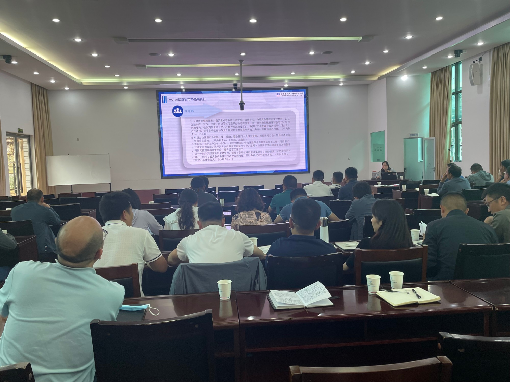 市场部就公司《市场拓展工作方案》进行了宣贯,围绕重点项目经营方案和投标策划方案编制、投标工作注意事项、“四库一平台”业绩填报工作等方面提出了具体要求。