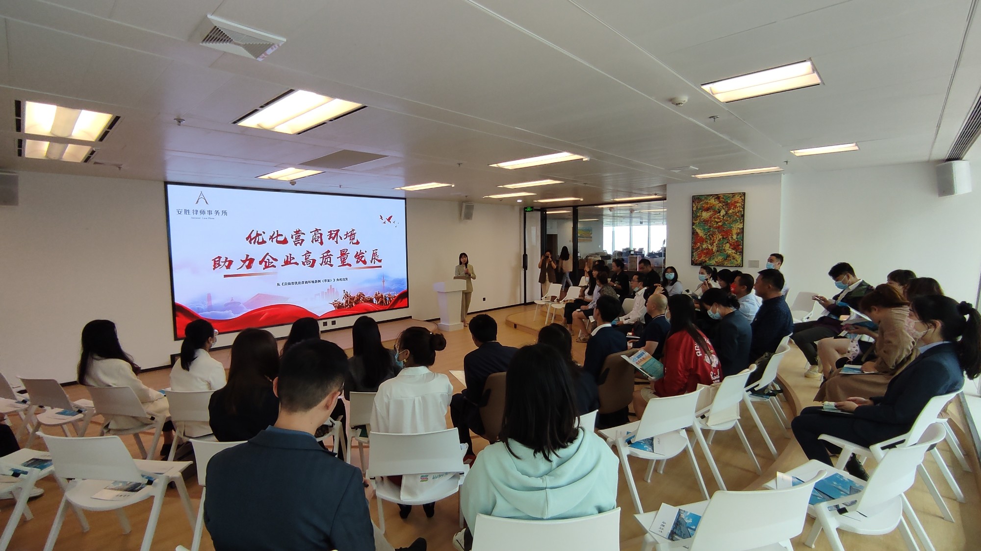 活动开始由安胜律师事务所的律师为参加活动的党员带来《优化营商环境助力企业高质量发展》专题讲座。讲座从《云南省优化营商环境条例(草案)》角度解读,围绕昆明市新环境、新形势下制约经济高质量发展的的难点、痛点、堵点问题,深入思考研讨如何贯彻新发展理念,切实做好党建思想理论教育工作,筑牢党员队伍的思想根基,进一步增强实干精神、表率意识,深入推进作风革命、效能革命,打好经济工作翻身仗。