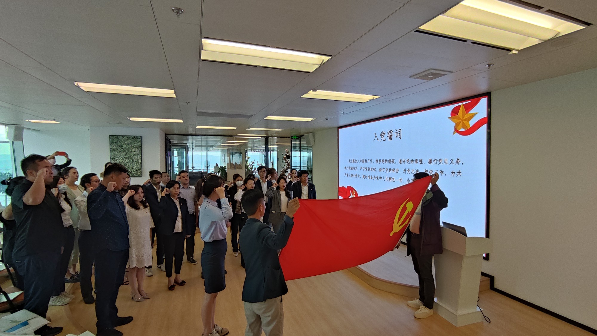 随后,全体党员重温入党誓词。