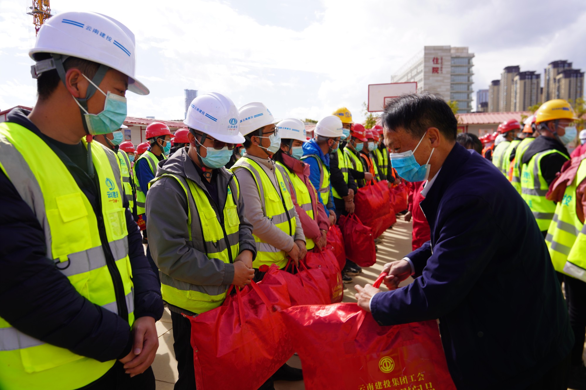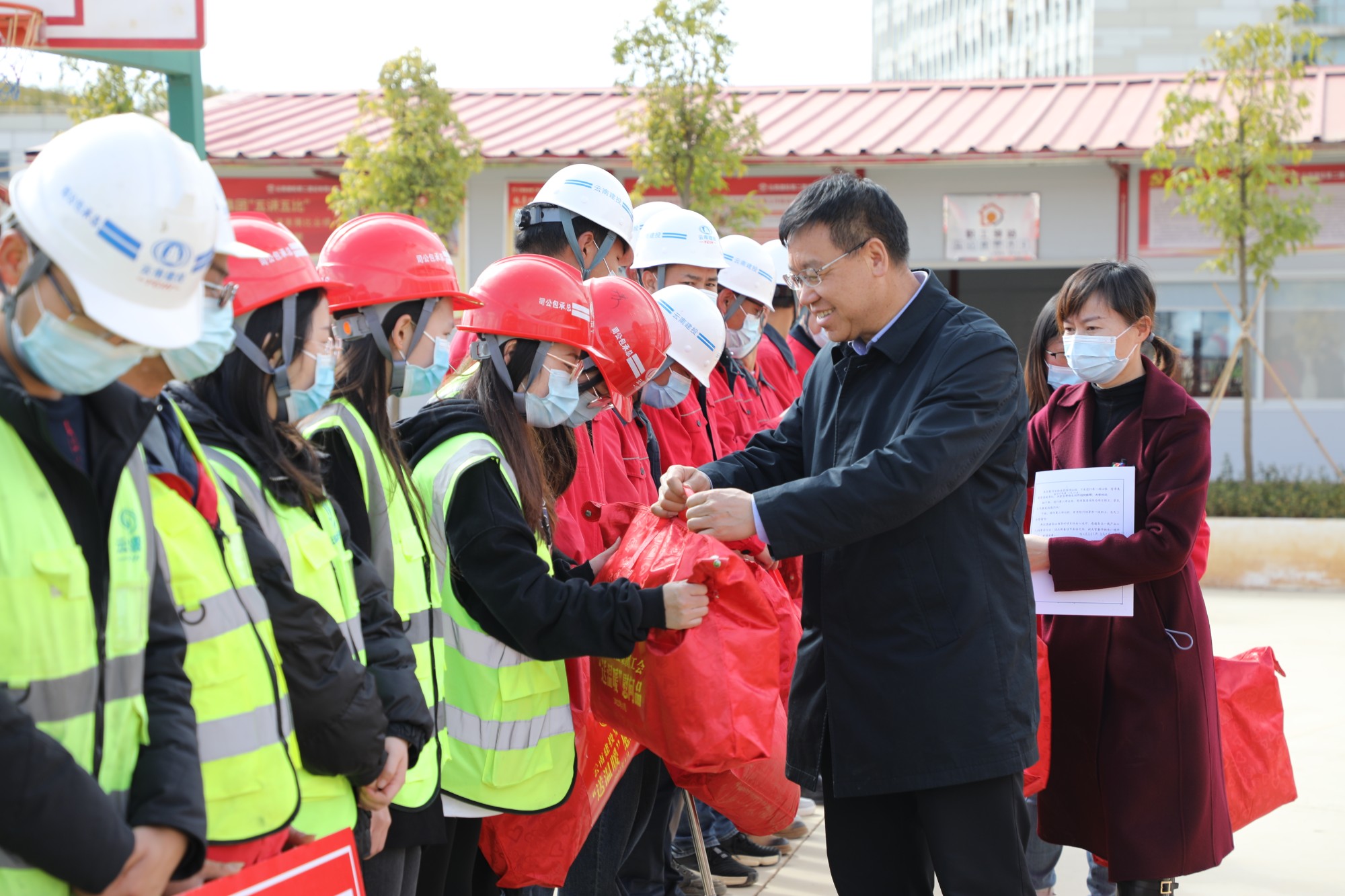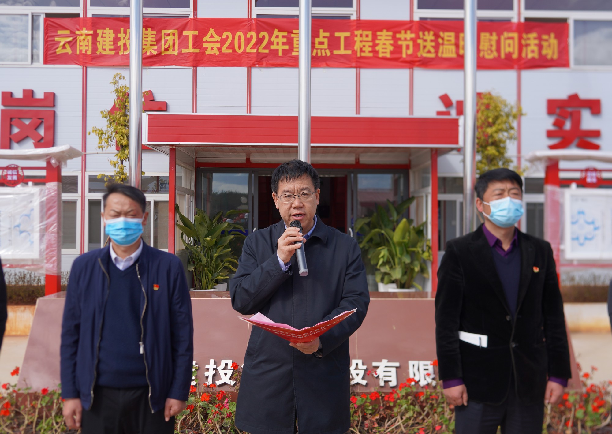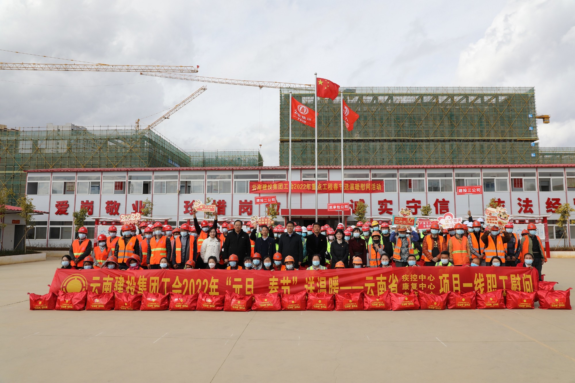 陈文双代表集团党委和工会对所有奋战在项目一线,努力辛勤工作的建设者和劳动者朋友们表示慰问,向关心支持项目生产的家属和各界人士表示最诚挚的感谢。陈文双表示,云南省疾控中心、康复中心、血液中心项目,是省政府重大工程项目,是全面提升昆明乃至云南省医疗保障的综合应急水平,发挥面向南亚东南亚地区医疗辐射作用,有效应对重大传染病、突发公共卫生事件的重点工程项目。陈文双希望二公司、三公司、总承包公司在下一步的工作中,一是认真落实安全生产责任制,筑牢安全生产防线,特别是要确保岁末年关的安全稳定;二是毫不松懈抓好疫情防控工作,做好现场管控和施工人员的管理;三是确保工程进度,按照总体目标和节点目标,全力推进项目建设,努力打造优质工程、精品工程、民心工程、廉洁工程。各公司工会要继续关注广大建设者的生产工作情况,多关心了解职工群众的诉求,多倾听职工群众的呼声,多为职工群众做好事、办实事、解难事,让职工群众有更多获得感、幸福感、安全感。最后,希望全体干部职工和工友们,勇挑重担、埋头苦干,努力在平凡而光荣的岗位上再展风采、再创佳绩,为推动集团持续高质量发展做出新的更大贡献!