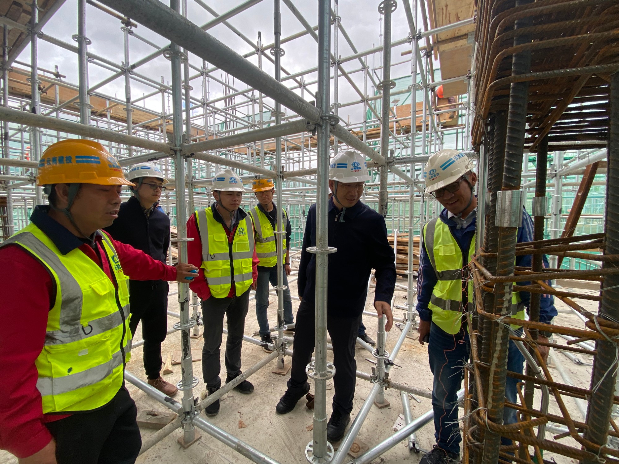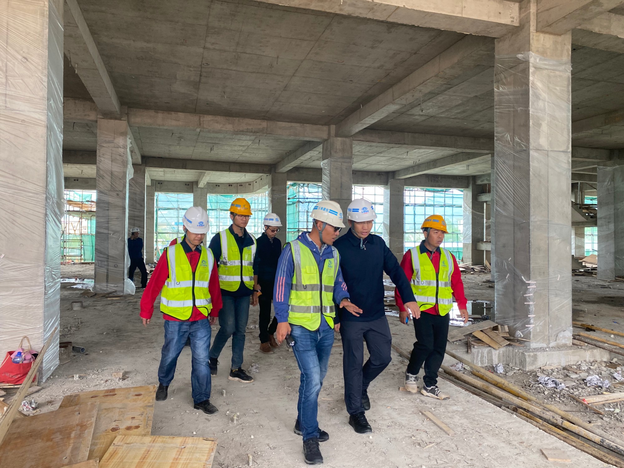 付隽苍一行深入施工现场,对现场质量、安全、进度、项目团队建设情况等情况进行全方位检查,在对住院楼铝模应用、钢筋施工、地下室后浇带施工、样板房进行实地检查后,组织召开工作指导会议。