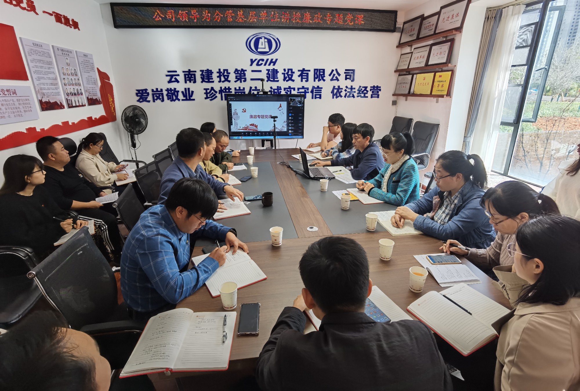 10月19日下午,公司党委委员、财务总监、董事代映华在第一安装分公司为分管党支部党员干部职工讲授党课及廉政党课。第十二直管部党支部、第一安装分公司党支部领导班子和党员职工现场聆听了党课,部分一线职工以钉钉视频直播的形式同步参加学习。