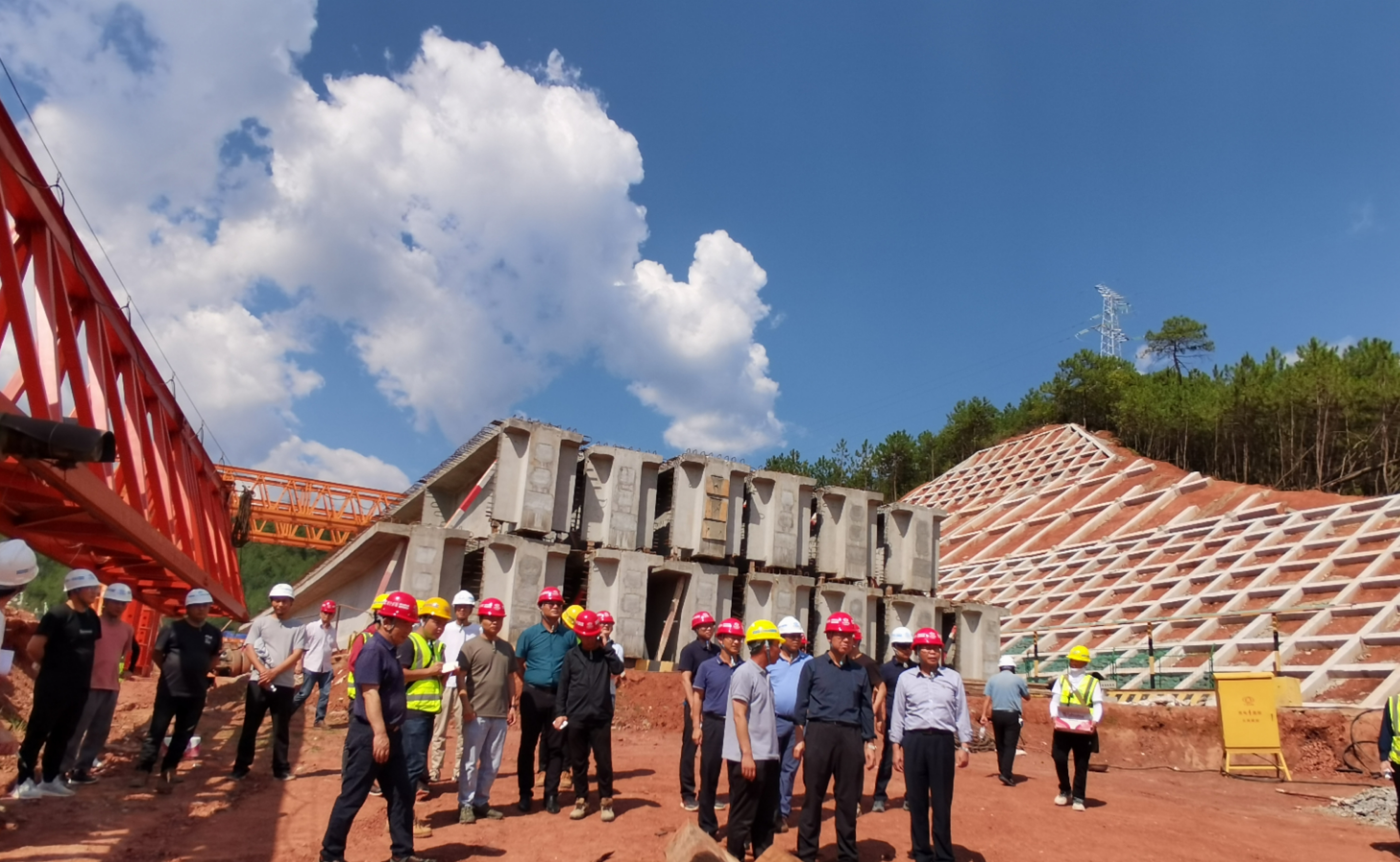 8月3日,集团党委副书记、工会主席陈文双,安全监督部部长包启云一行到路桥分公司承建的云兰高速土建十七分部开展调研检查。总承包二部党委书记祁锐,基投公司党委书记、副董事长吴亚俊,副总经理杨仕华,年轻副总经理、云兰高速公路投资开发有限公司董事长杨荣双陪同检查。