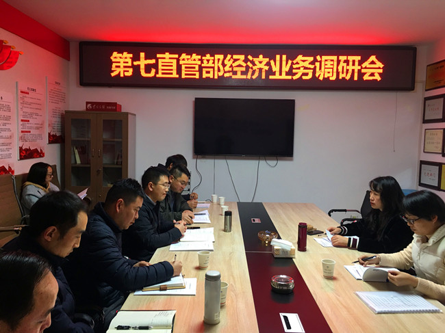 12月31日上午,阴明珉及经济管理部相关负责人到第七直管部进行经济业务管理工作调研,直管部领导班子及办公室人员参加会议。