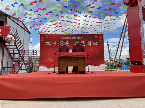 下午2点30分,中秋慰问演出在轻快的音乐声中正式拉开帷幕。此次演出以“双节同庆 二建同心”为主题,各项目的同事们利用下班时间编排的火辣热舞、搞笑相声、诗朗诵、精致小品、优美合唱等9个节目都纷纷呈现在我们的眼前,一张张青春自信的脸上洋溢着灿烂的笑容,到处都是节日欢快的气氛。