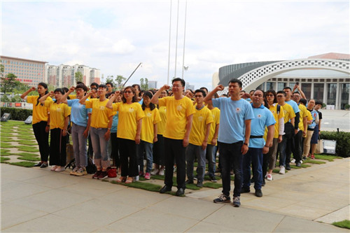 参观结束后,公司党委书记邢儒民带领全体党员在鲜红的党旗下重温入党誓词,提醒大家不忘入党初心。随后,邢儒民为到场党员颁发政治生日贺卡。庄重的仪式感,给党员们送去了极大的惊喜,一个党龄有19年的老党员激动的说,入党这么多年,第一次很郑重的过政治生日,“我是党的一分子”的身份意识更加强烈了。