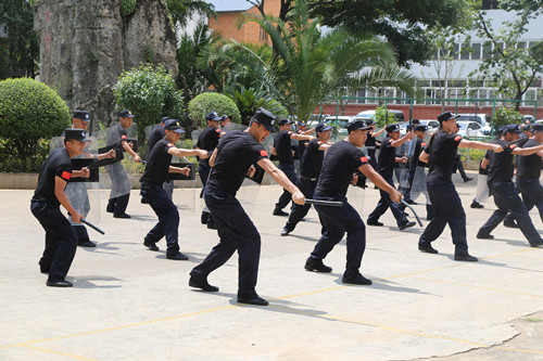 本次培训班于8月19日开班,来自集团所属各单位的120名护卫队骨干参加了为期三天的集中式训练。训练过程中,队员们吃苦耐劳,团结一致,经受住了高温与烈日的双重考验,原本计划为期一周的训练内容在三天时间里就全部完成,队员整体素质得到迅速提升。在当天的结业仪式上,全体参训人员分为四个方阵向出席仪式的领导展示了单兵队列训练动作、应急棍术以及警棍盾牌术等各项训练成果,现场表现得到了领导们的一致认可。