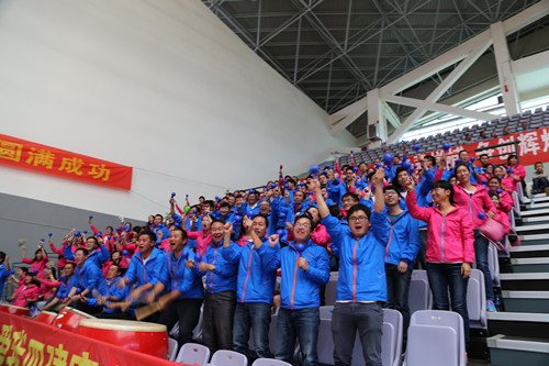 除了赛场上作战的队员们外,我们的的团队里还有一群可爱的人,那就是公司的啦啦队员和后勤保障队员。此次比赛,公司领导班子成员到现场为公司参赛队员鼓劲、加油,与从公司各职能部门及各直管部抽调来的一百多名员工组成强大的啦啦队阵容,成为比赛队员们最强大的支援团队。在比赛中,啦啦队方阵为比赛队员们呐喊、助威,热情高涨、气势如虹,声音响彻了整个球馆。他们始终与赛场上的队员们站在同一战线上,共同努力,因为他们都属于云南二建这个大家庭,他们的努力都是为了云南二建这个团队的发展壮大。