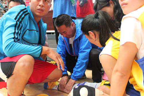 当天,在之前的比赛中,有一名队员因为突发腿部抽筋不能继续比赛,公司医院院长李武胜见状便立刻跑上前去给受伤队员做了处理。在这种时候,并不需要我们去区分属于哪一家公司的,因为那里需要我们,因为我们都属于建工集团这个大家庭,在这个大家庭里需要我们互帮互助,需要我们团结一致、敢于担当,这是高原铁军的精神,是高原铁军的使命。